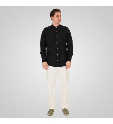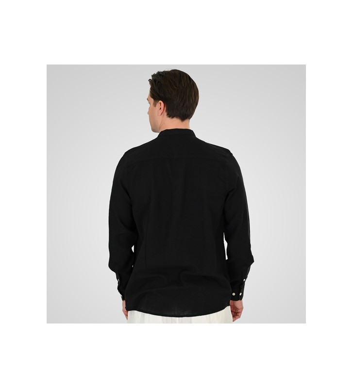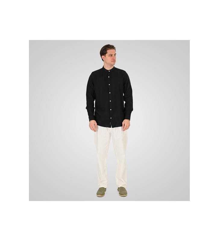 Λινό πουκάμισο μάο, μακάρι μανίκι. Μπορεί να φορεθεί με βερμούδες και παντελόνι chino.