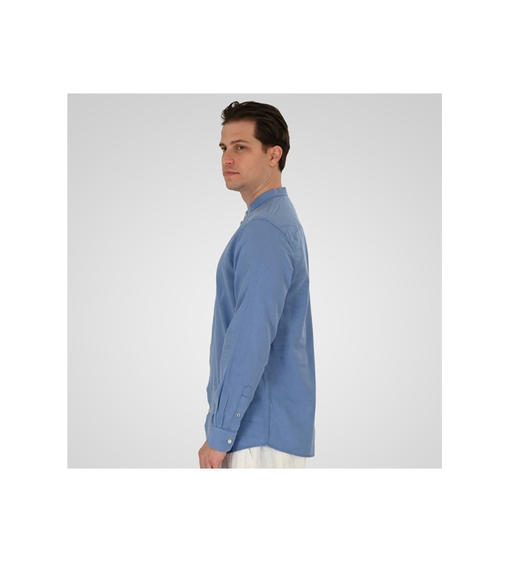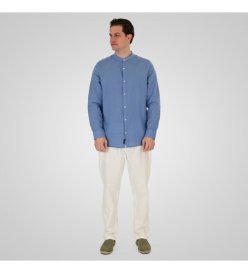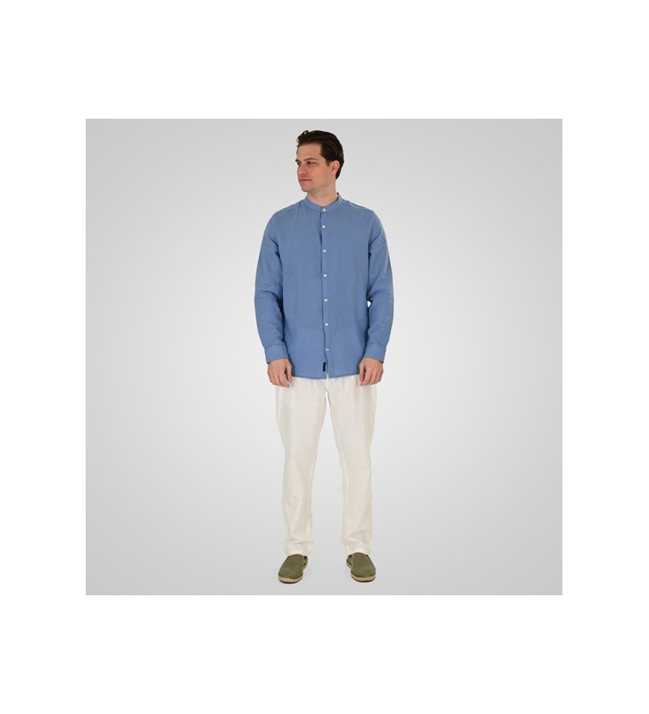 Λινό πουκάμισο μάο, μακάρι μανίκι. Μπορεί να φορεθεί με βερμούδες και παντελόνι chino.