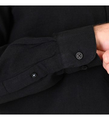 Λινό πουκάμισο μάο, μακάρι μανίκι. Μπορεί να φορεθεί με βερμούδες και παντελόνι chino.
