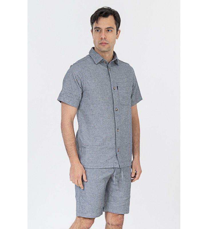 Λινό Πουκάμισο με γιακά, μακάρι μανίκι. Μπορεί να φορεθεί με βερμούδες και παντελόνι chino.