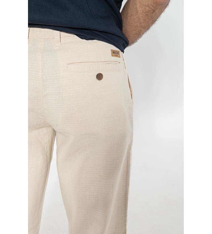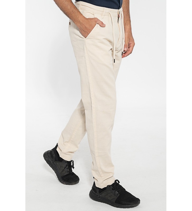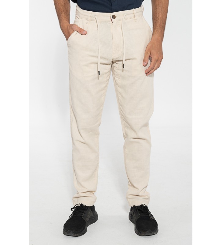 Λινό παντελόνι ιδανικό για casual αλλά και smart-casual εμφανίσεις. Διαθέτει ελαστική μέση με ρυθμιζόμενο κορδόνι και κουμπί, προσφέροντας πρακτικότητα και καλή εφαρμογή.