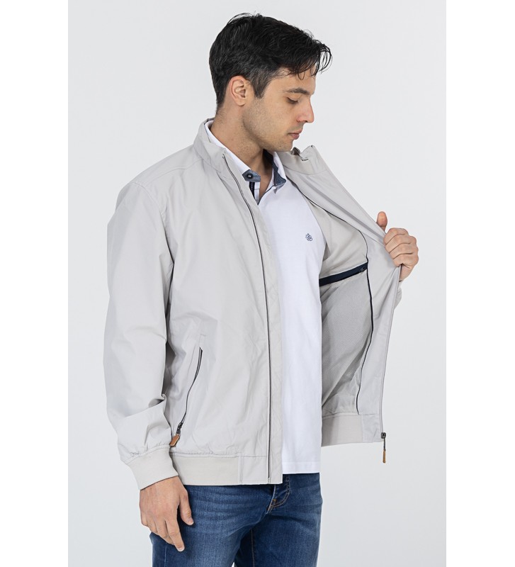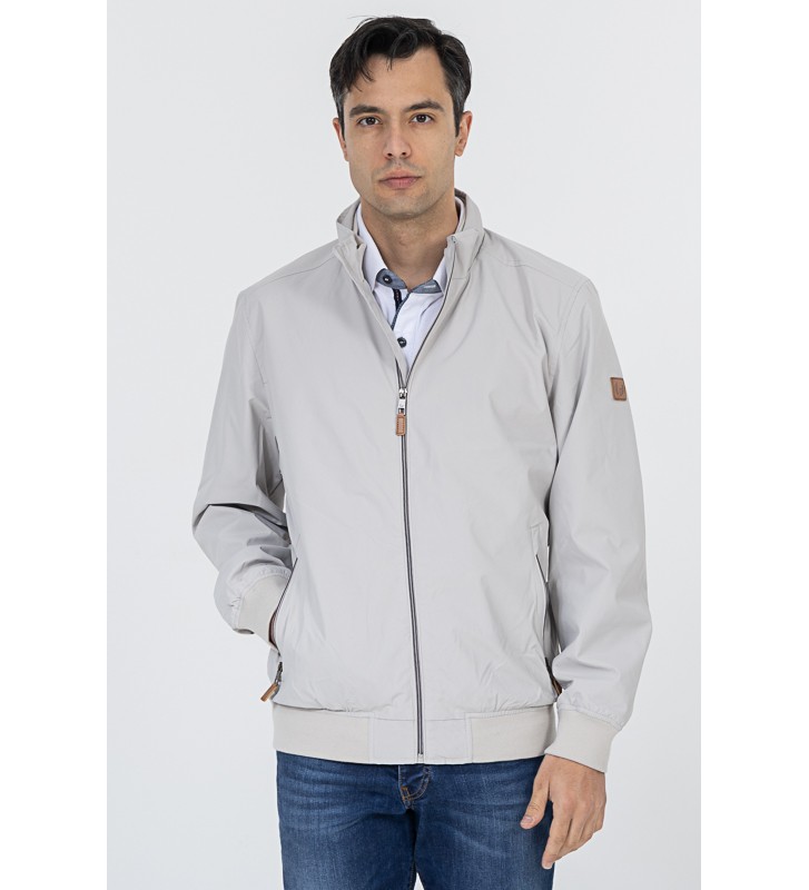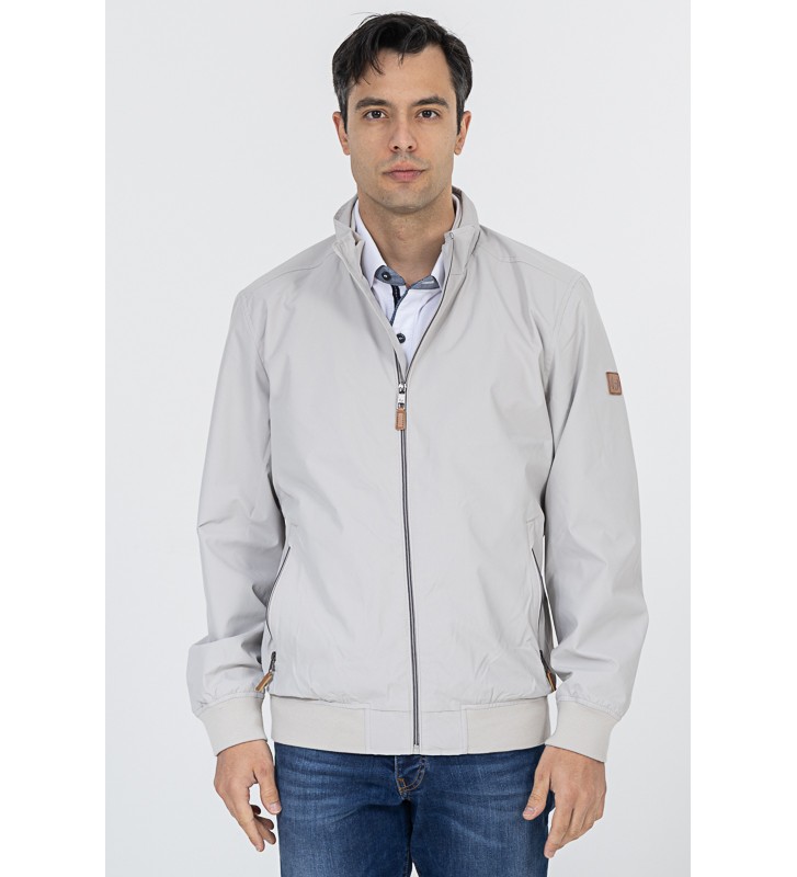 Ανδρικό μπουφάν με φερμουάρ, όρθιο γιακά και τσέπες zip. Άνετη εφαρμογή με λάστιχο στο τελείωμα στη μέση.