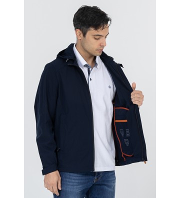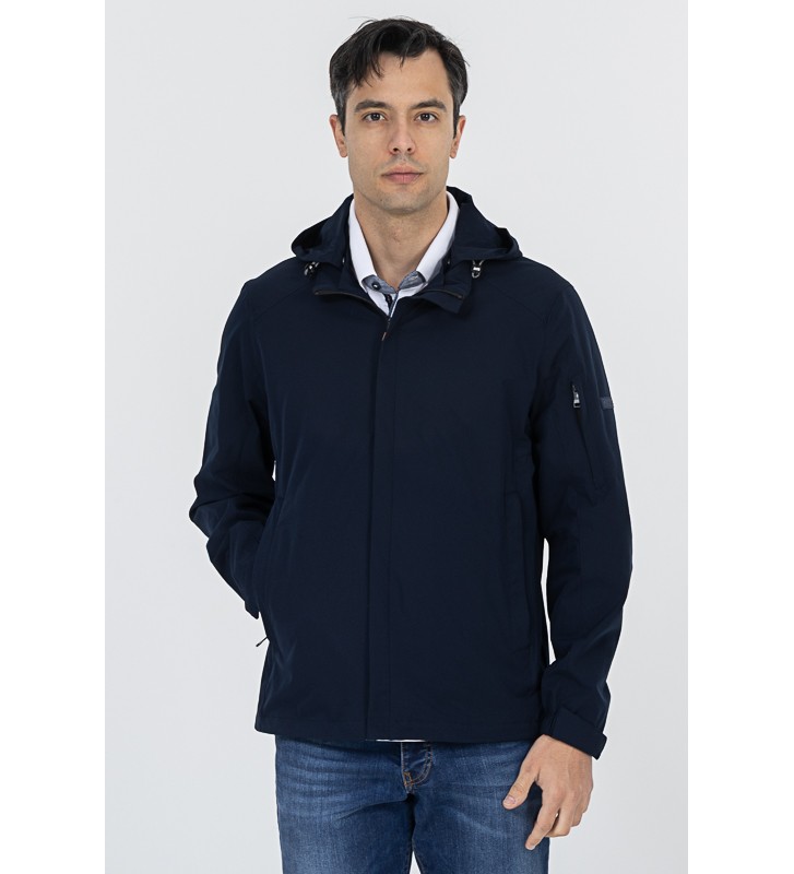 Μπουφάν ανοιξιάτικο κοντό με αποσπόμενη κουκούλα, χωρίς λάστιχο στο κάτω μέρος.