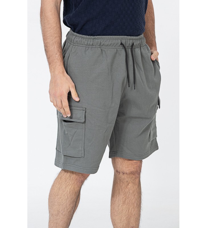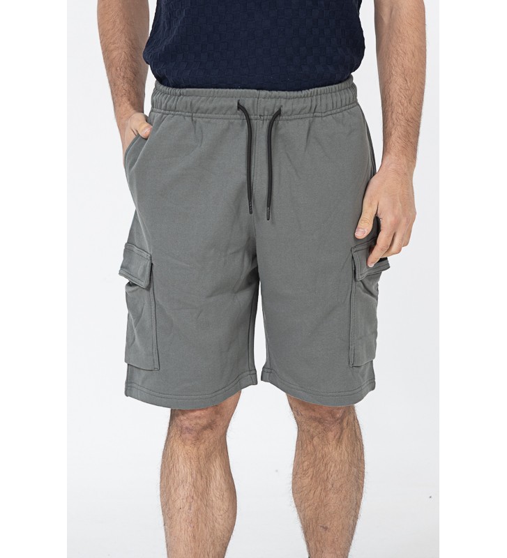 Ανδρική βερμούδα μακό cargo με λάστιχο στη μέση και κορδόνι ρύθμισης για άνετη εφαρμογή.