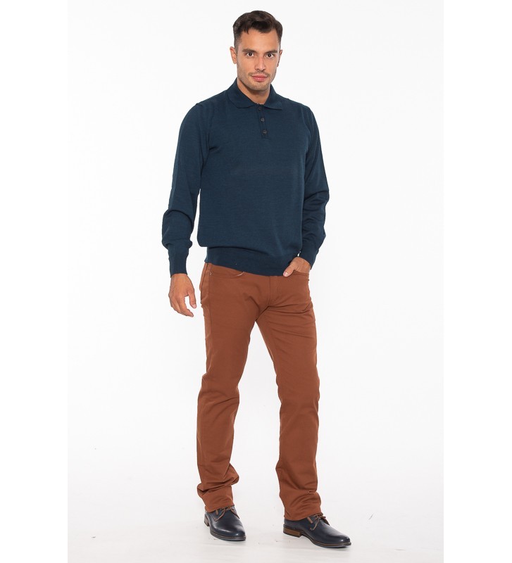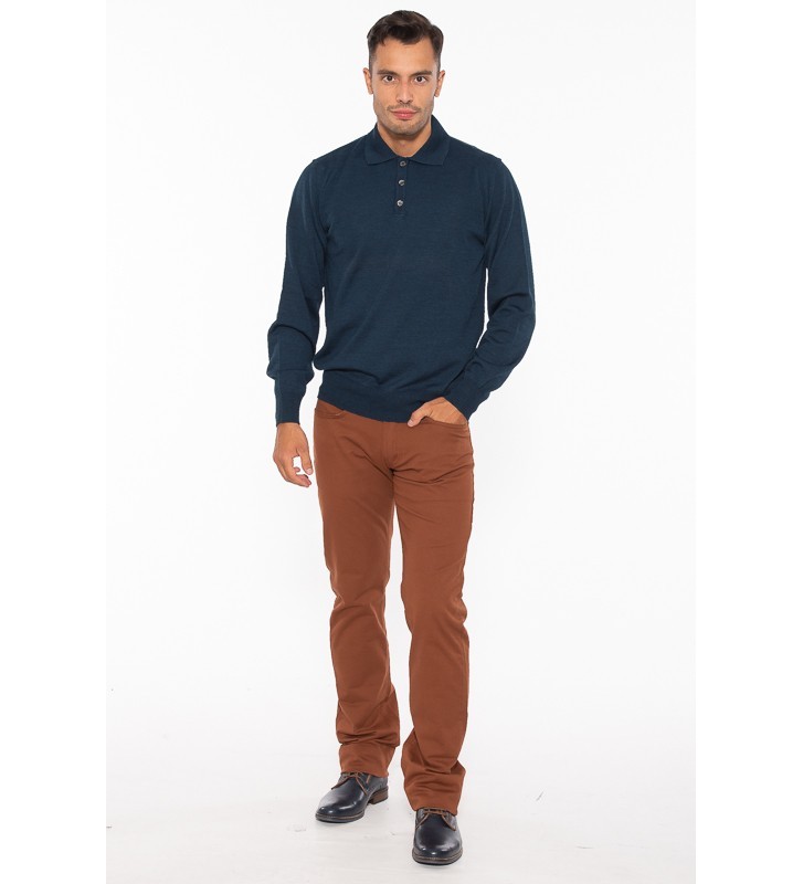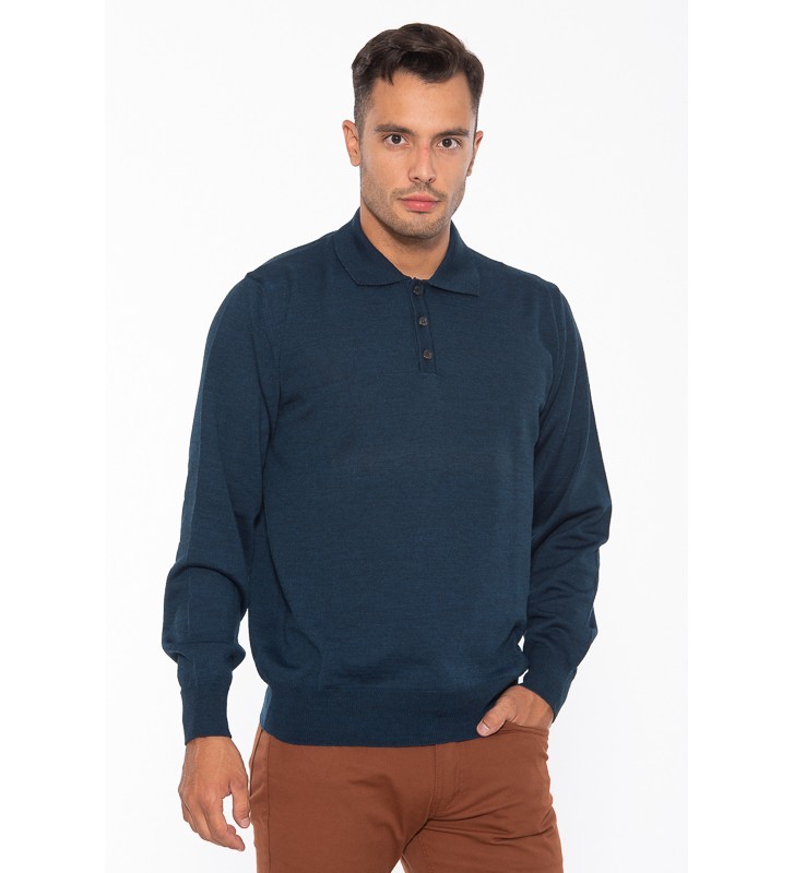 - Ένα πλεκτό μονόχρωμο σε regular γραμμή με γιακά και κουμπί.