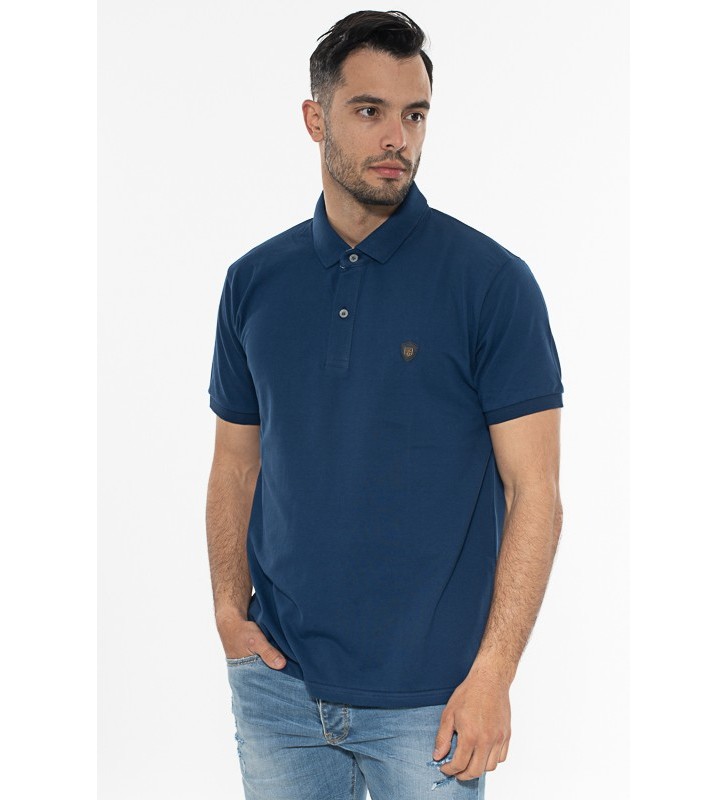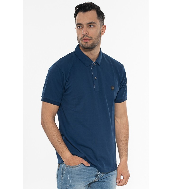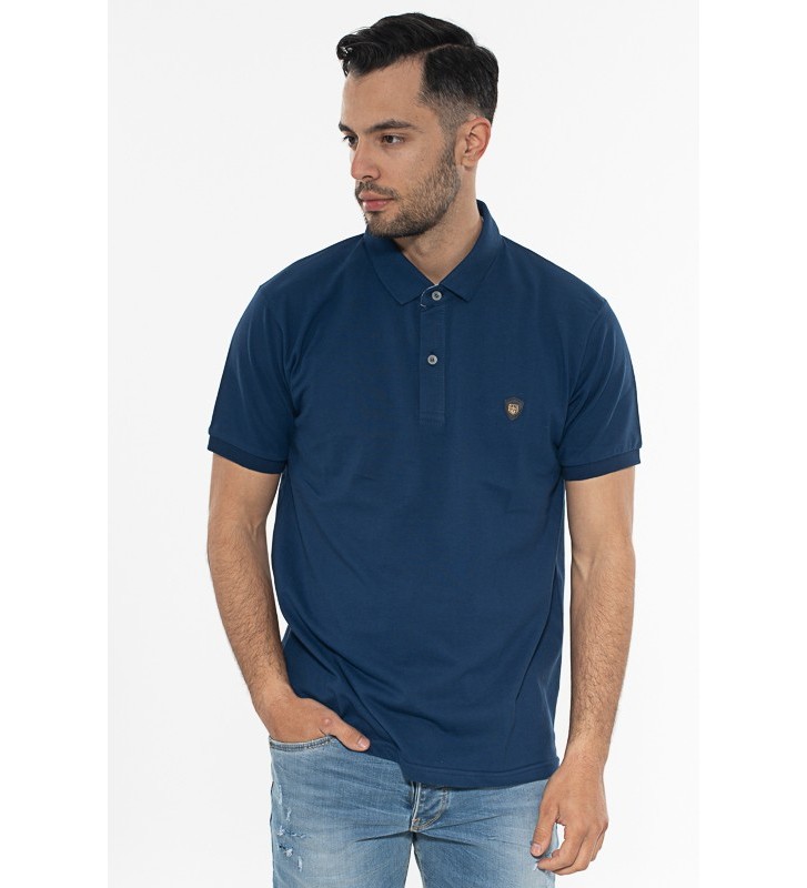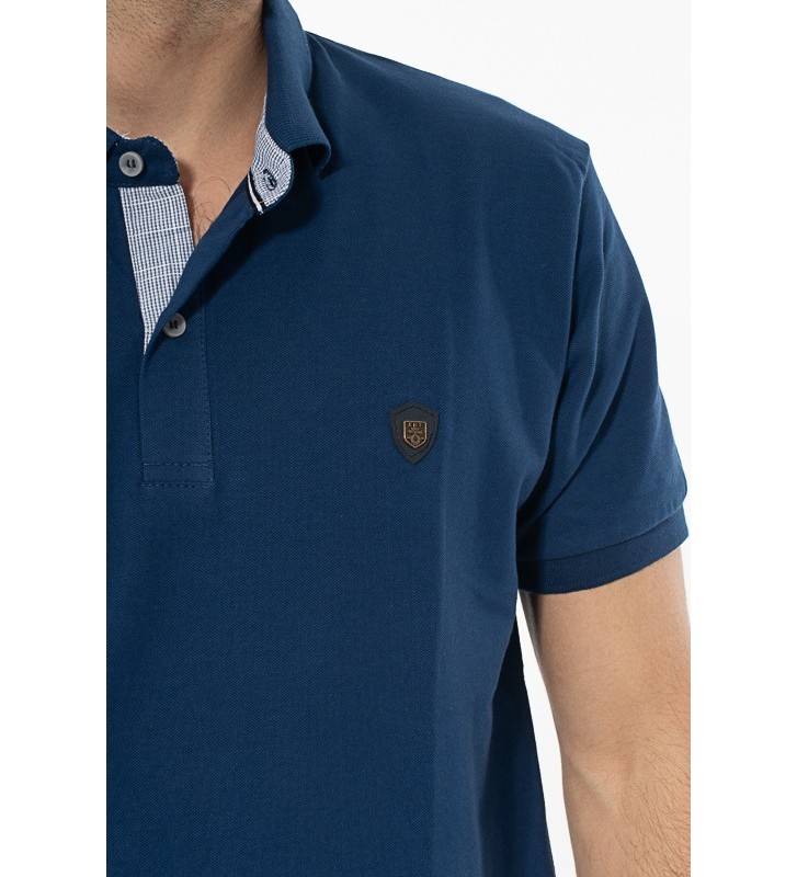 Πλεκτό μπλουζάκι τύπου πόλο κοντομάνικο, με γιακά, διακριτική υφή στο ύφασμα, χωρίς τσέπη στο στήθος.