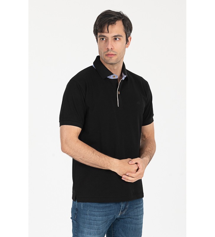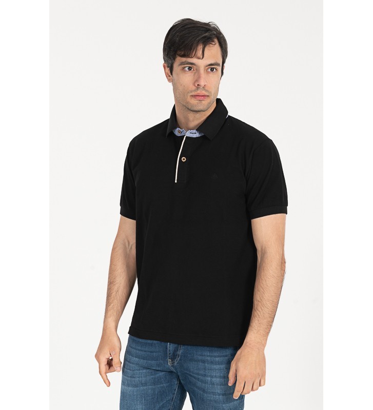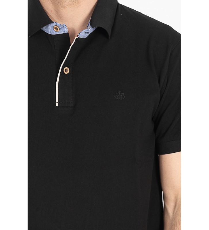 ORIGIN Μπλούζα Γιακάς Κουμπί 232720 ΜΑΥΡΟ