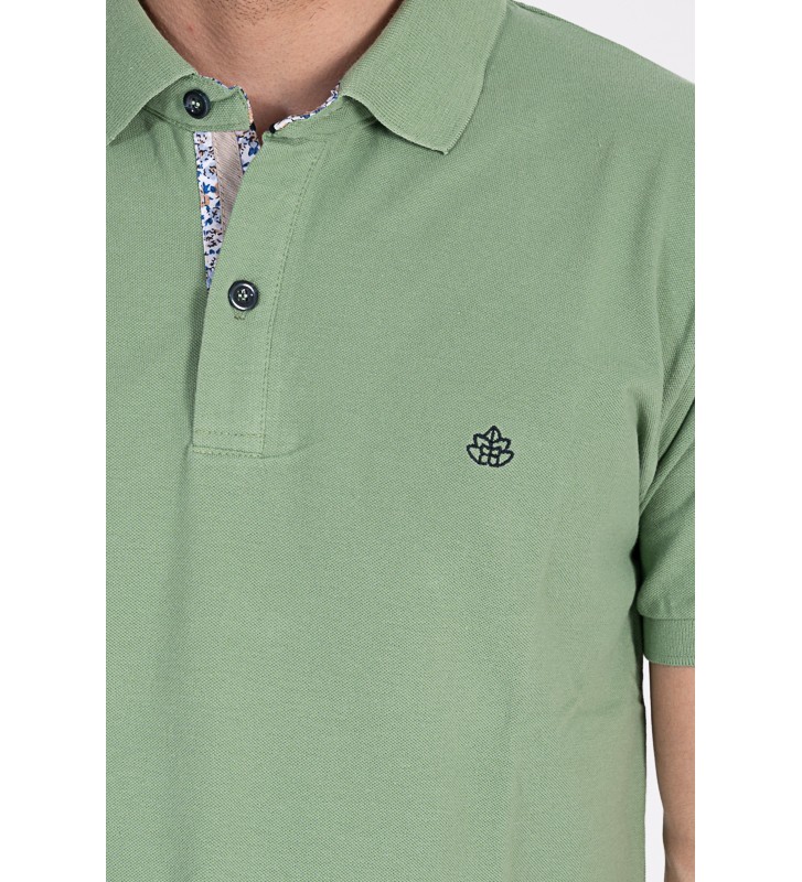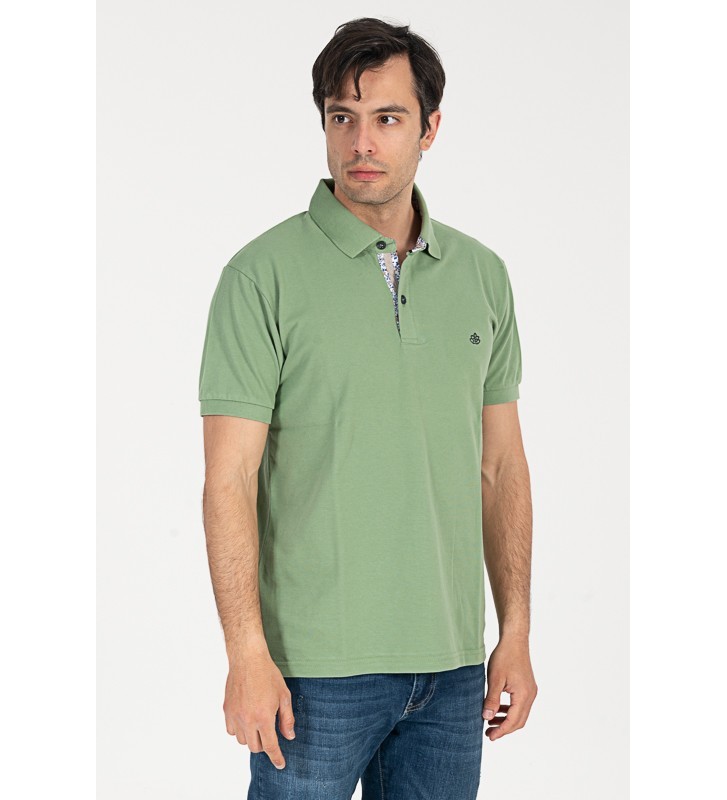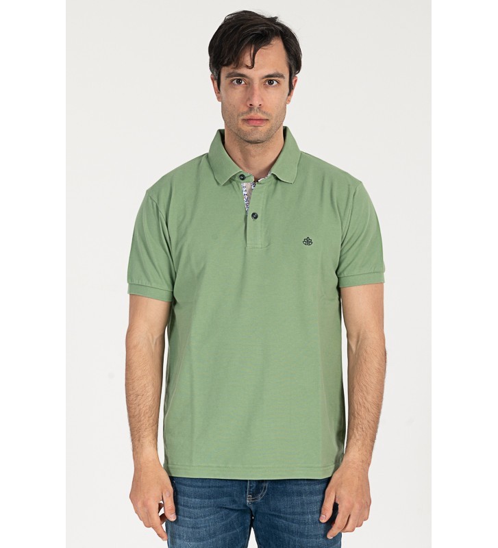Πλεκτό μπλουζάκι τύπου πόλο κοντομάνικο, με γιακά, διακριτική υφή στο ύφασμα, χωρίς τσέπη στο στήθος.