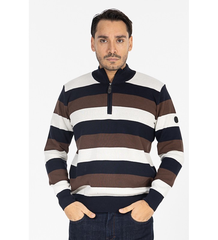 MAKIS TSELIOS Πλεκτό ZIP Ριγέ NB357 ΓΚΡΙ