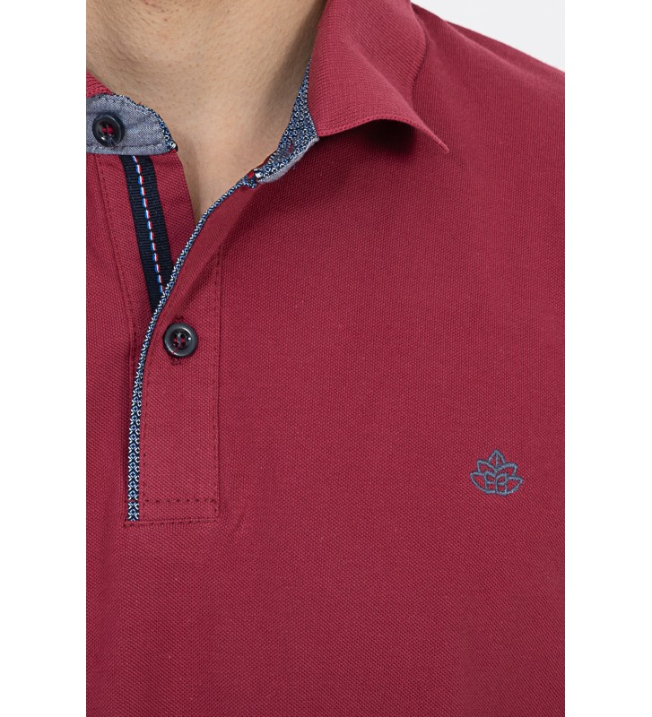 Πλεκτό μπλουζάκι τύπου πόλο κοντομάνικο, με γιακά, διακριτική υφή στο ύφασμα, χωρίς τσέπη στο στήθος.