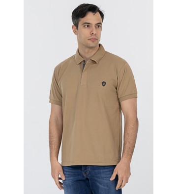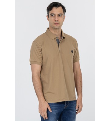 Πλεκτό μπλουζάκι τύπου πόλο κοντομάνικο, με γιακά, διακριτική υφή στο ύφασμα, χωρίς τσέπη στο στήθος.