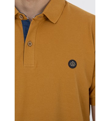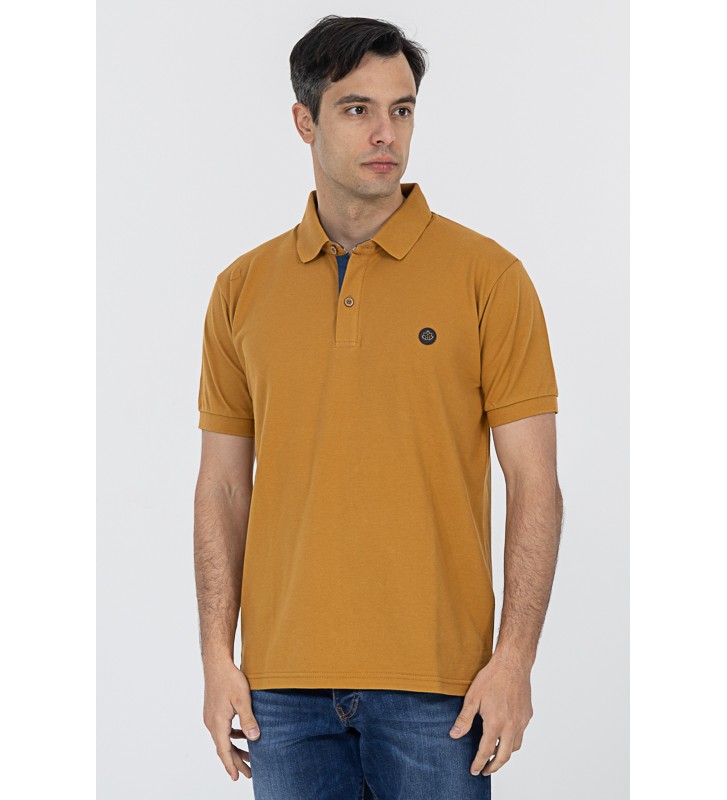 Πλεκτό μπλουζάκι τύπου πόλο κοντομάνικο, με γιακά, διακριτική υφή στο ύφασμα, χωρίς τσέπη στο στήθος.