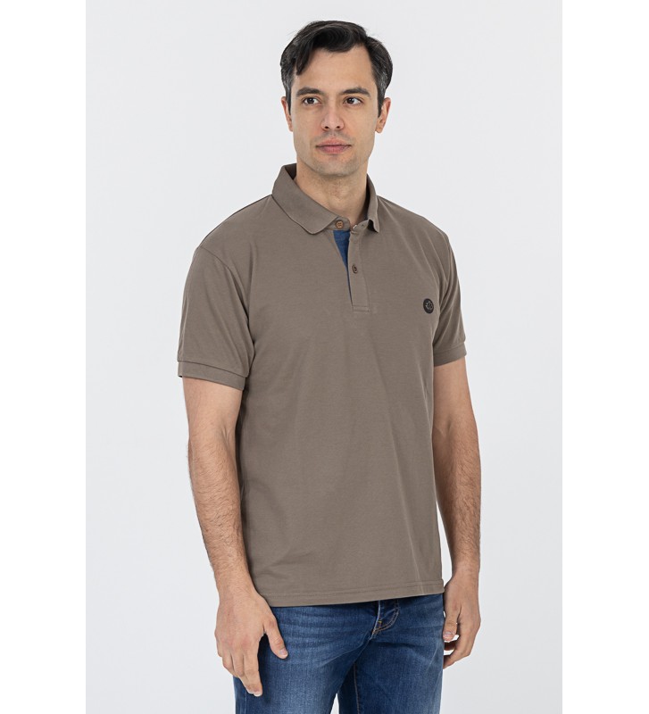 Πλεκτό μπλουζάκι τύπου πόλο κοντομάνικο, με γιακά, διακριτική υφή στο ύφασμα, χωρίς τσέπη στο στήθος.