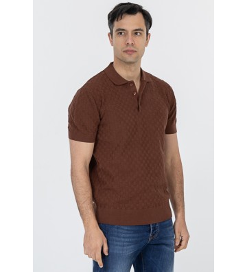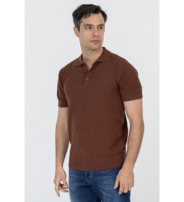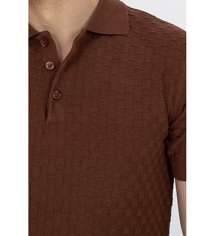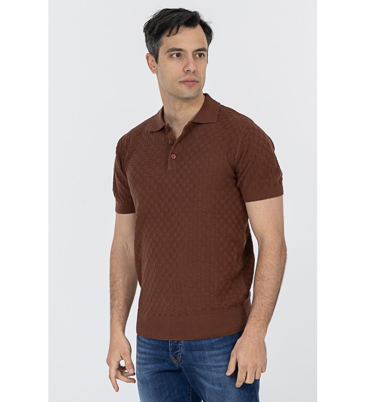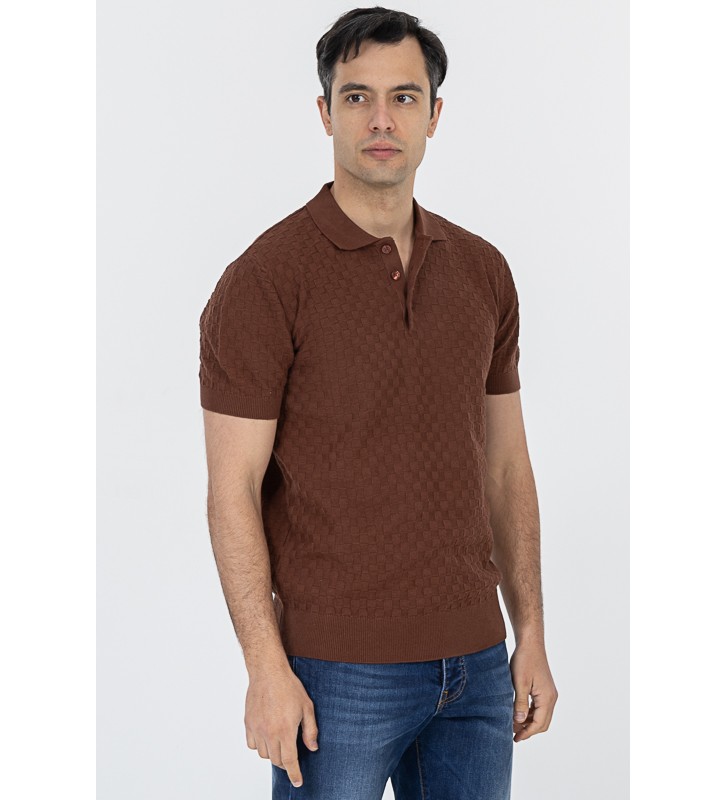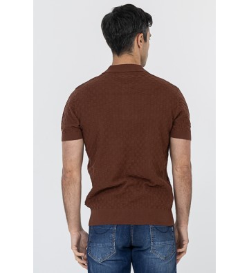 Πλεκτό μπλουζάκι τύπου πόλο κοντομάνικο, με γιακά, διακριτική υφή στο ύφασμα, χωρίς τσέπη στο στήθος.