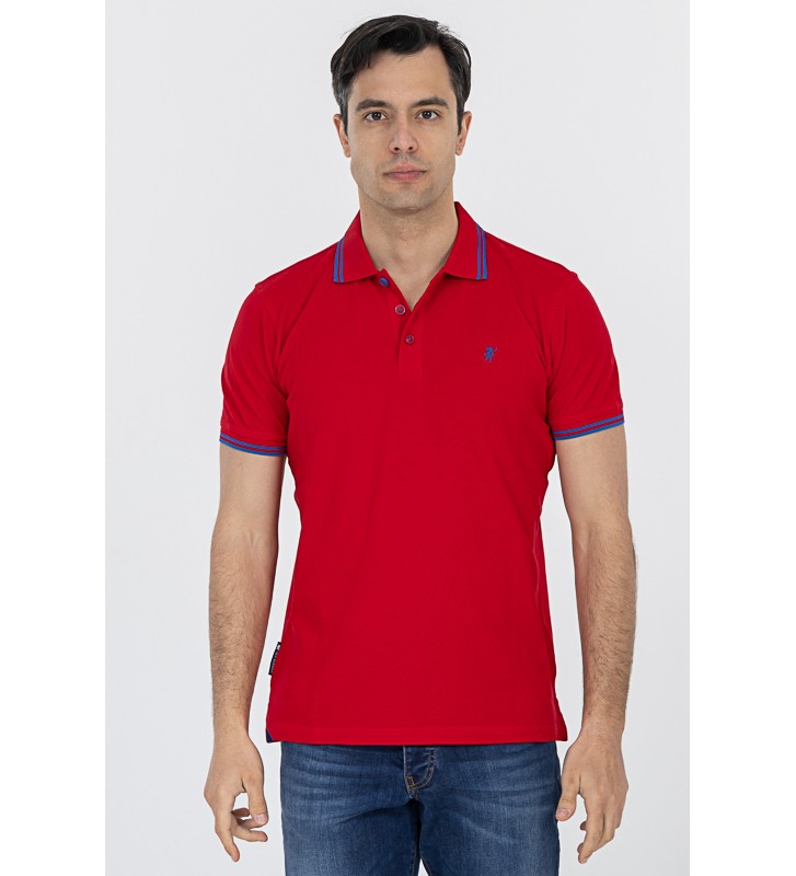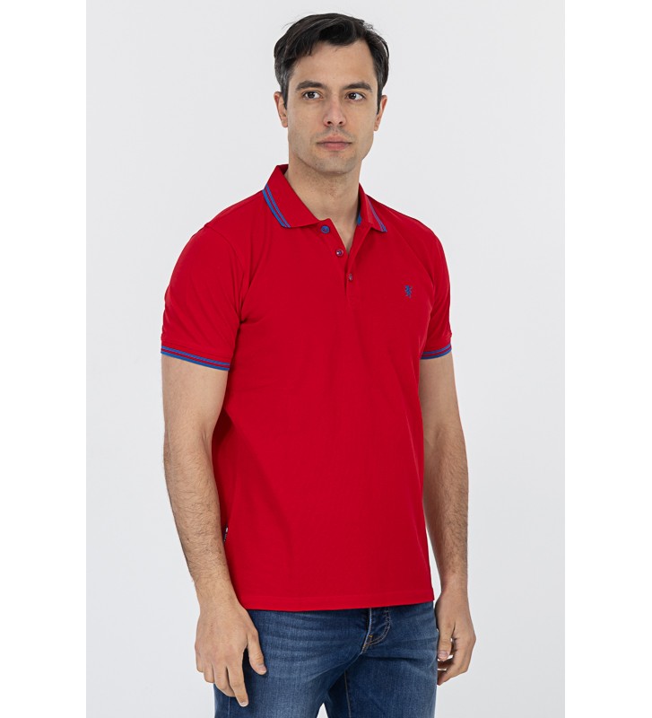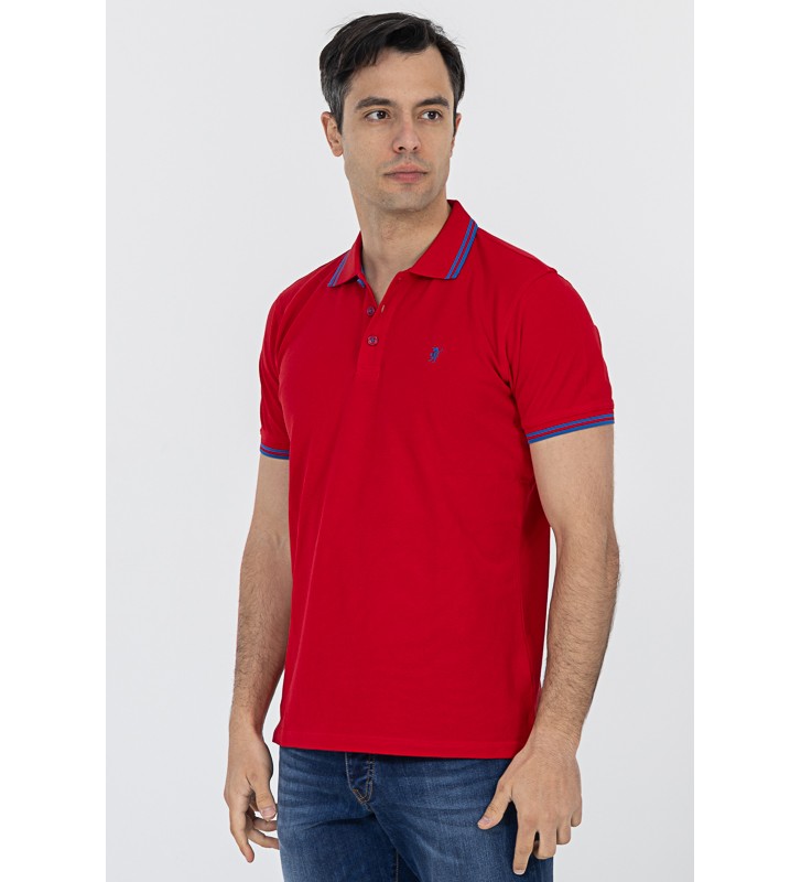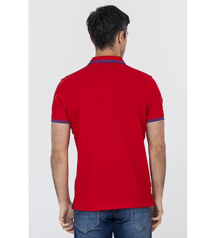 Πλεκτό μπλουζάκι τύπου πόλο κοντομάνικο, με γιακά, διακριτική υφή στο ύφασμα, χωρίς τσέπη στο στήθος.